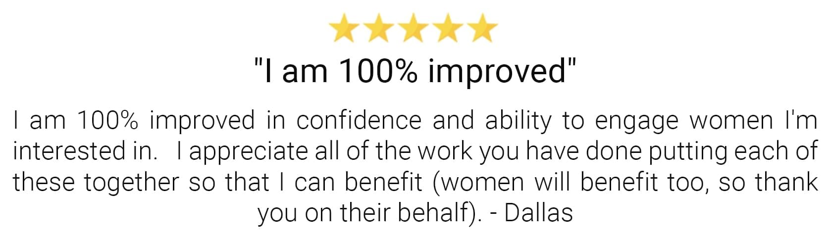 The material on this site may not be reproduced, distributed, transmitted, cached, or otherwise used, except with the prior written permission of Wing Girl Method. This website is an educational service that provides general information. The information contained in or made available through this Product cannot and is not intended to replace or substitute for the services of trained professionals in any field, including, but not limited to, psychological, financial, medical, or legal matters. In particular, you should regularly consult a doctor in all matters relating to physical or mental health, particularly concerning any symptoms that may require diagnosis or medical attention.